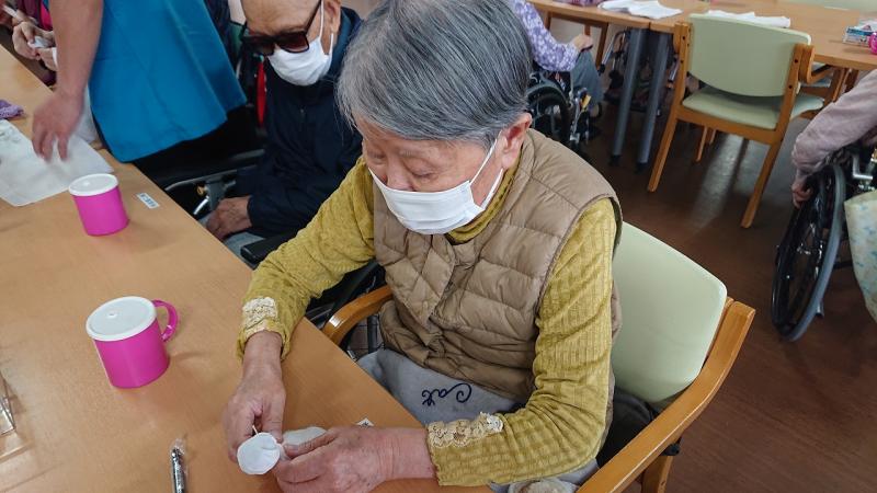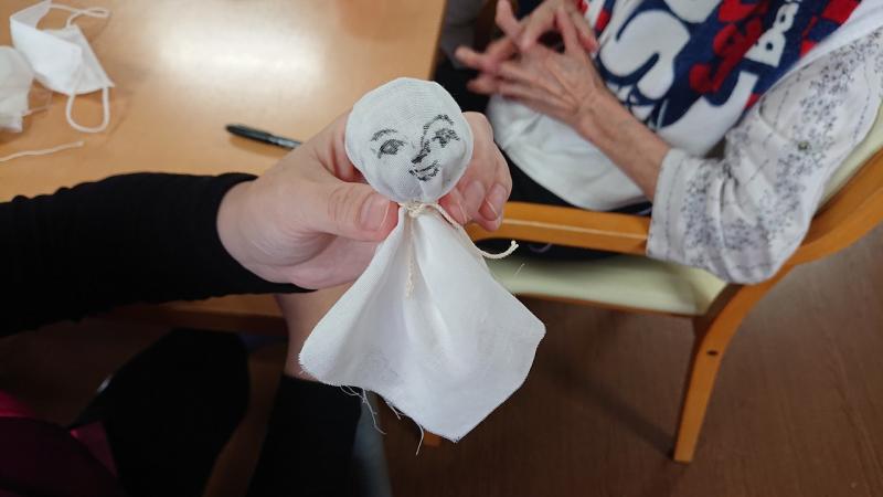 可愛らしいてるてる坊主を、ご自身の居室に飾り付けられて