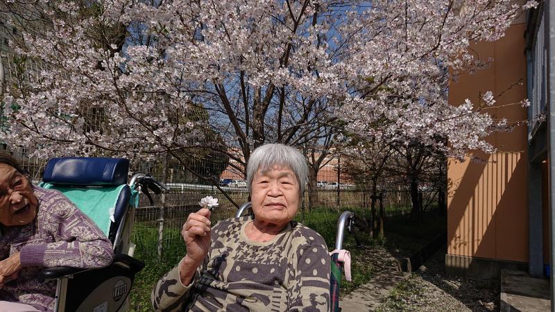 本日は施設の敷地内に咲いている桜を見に行きました(^^)/