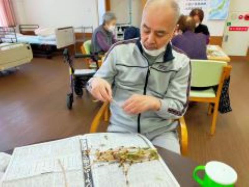 そのつくしを職員が野に取りに行き、利用者様に“はかま取り”をして頂きました。