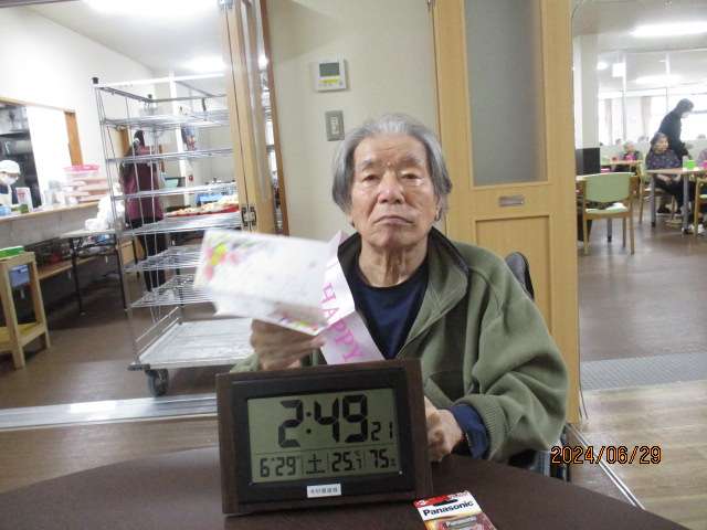 誕生日当日に、ご家族様が施設へ時計を届けて下さいました。