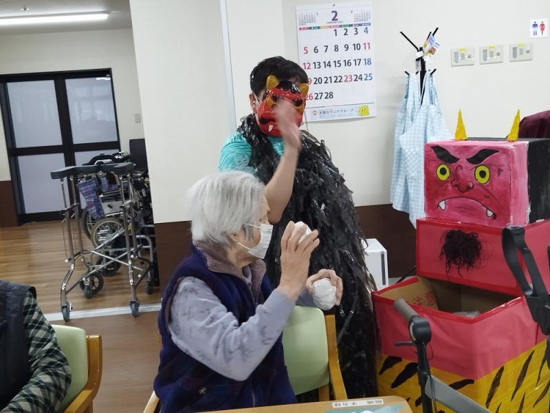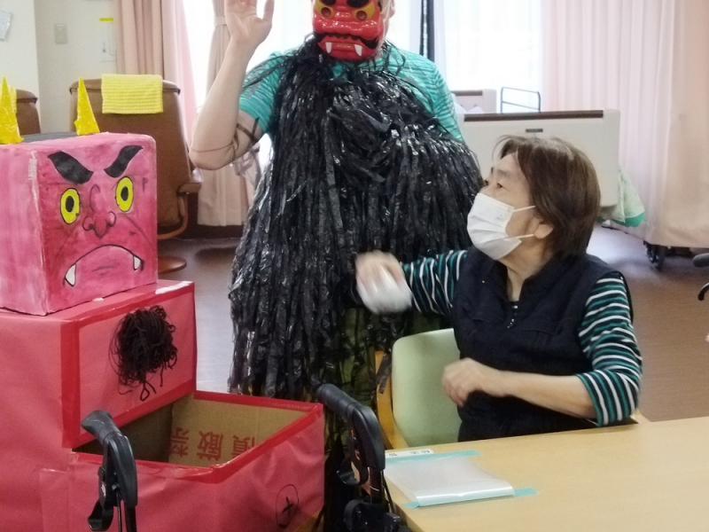 利用者様はマスク越しではありますが、「鬼は外、福は内」と大きな声で邪気を払われていました。