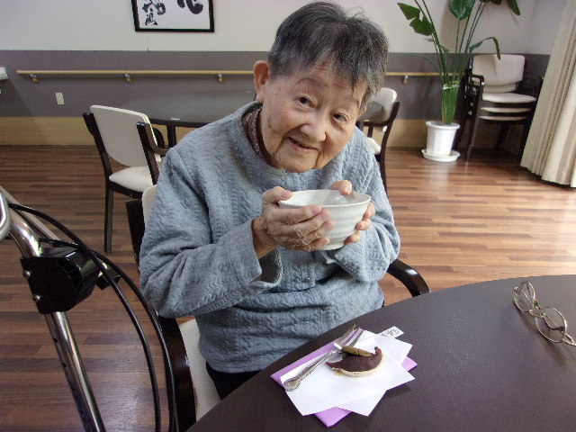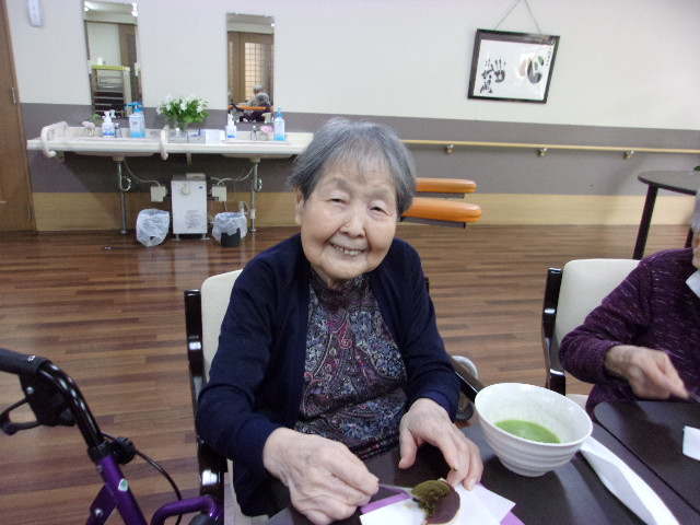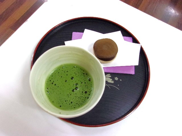 「初めて見るお菓子だわ」「抹茶ととっても合いますね」「皆でお喋りしながら食べると美味しいわ」