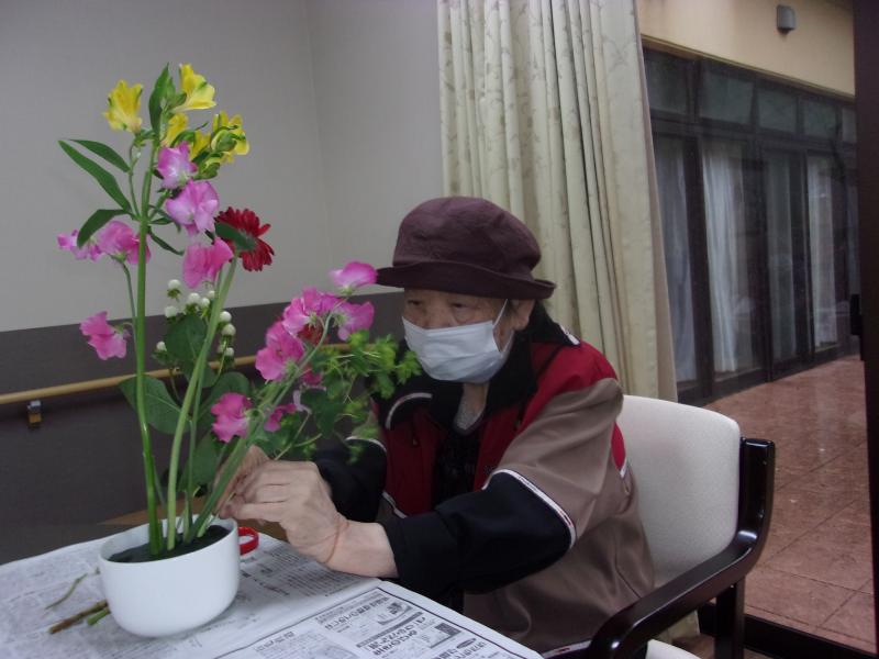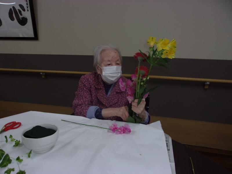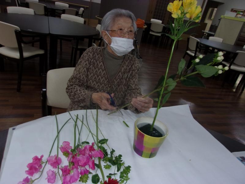 立春を過ぎ【春】をお題に花と向き合い、バランス、色合いを考えながら真剣な眼差しで花を活けられていました。