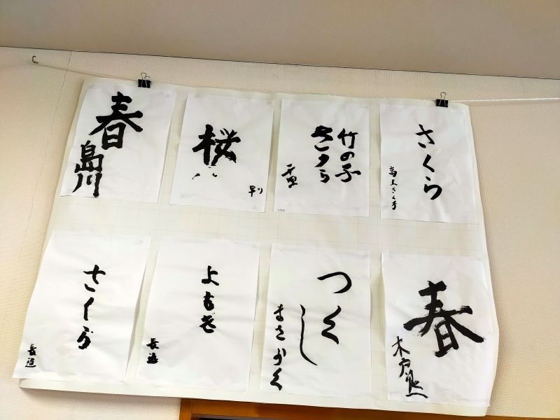 「春」をテーマに書道を行いました。